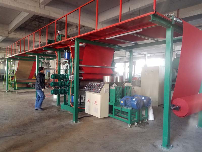 PVC與地毯復(fù)合腳墊設(shè)備:PVC復(fù)合地毯設(shè)備是目前市場上較為流行的一種家用及商業(yè)地毯。它具有環(huán)保,美觀,價廉,實用取用市場的青睞,本公司所生產(chǎn)的PVC及TPR復(fù)合地毯生產(chǎn)設(shè)備具有良好的穩(wěn)定性,能連續(xù)加工多種規(guī)格的PVC底膠復(fù)合鋪地地毯,可適應(yīng)多種片材或卷材培毯,可將卷材按規(guī)定的尺寸自動切割成方塊地毯,設(shè)備設(shè)計合理,操作簡單。