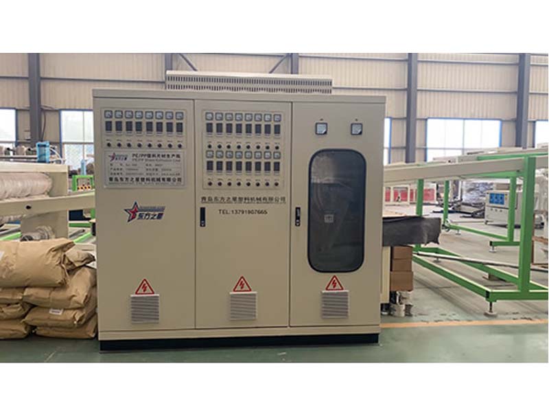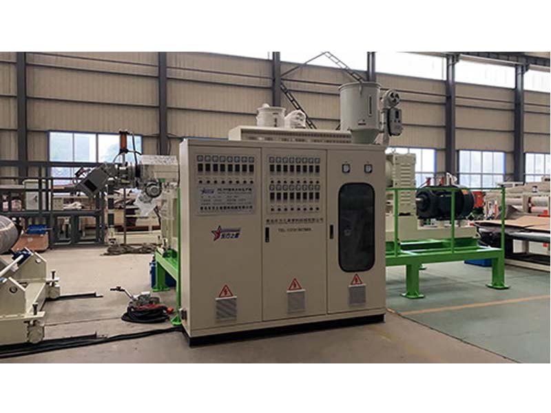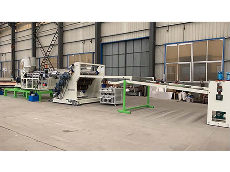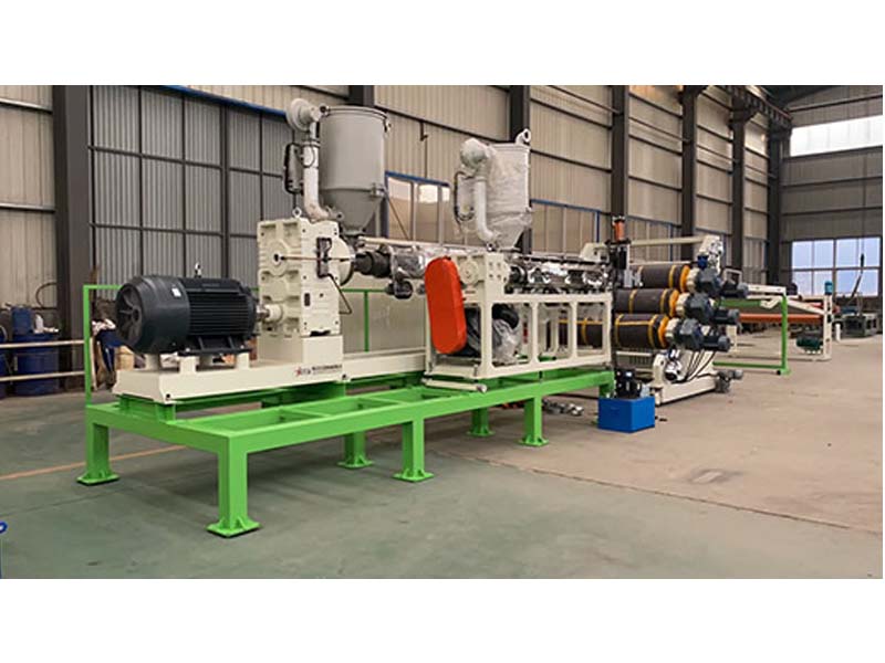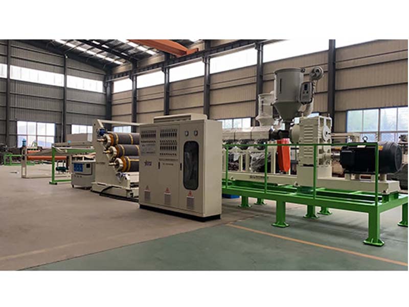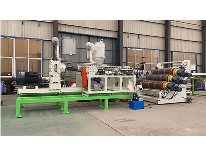 PP三層共擠片材生產(chǎn)線:可生產(chǎn)寬度750-1500毫米、厚度0.2-2毫米、單層/雙層/三層的塑料片材。該設(shè)備采SJ90-33/1和SJ75-30/1單螺桿擠出機(jī)、液壓自動(dòng)換網(wǎng)器、A+B+A三層共擠分配器、T型彈性模口可調(diào)模具、斜45度三輥壓光機(jī)、三合一水溫機(jī)、不銹鋼冷卻托架并裝有寬幅可調(diào)切邊刀、橡膠輥牽引機(jī)、雙工位氣漲軸收卷機(jī)。生產(chǎn)線采用符合人體工位學(xué)的電控柜:歐姆龍智能溫控系統(tǒng)、西門子低壓電器、國(guó)內(nèi)外馳名品牌變頻調(diào)速器。