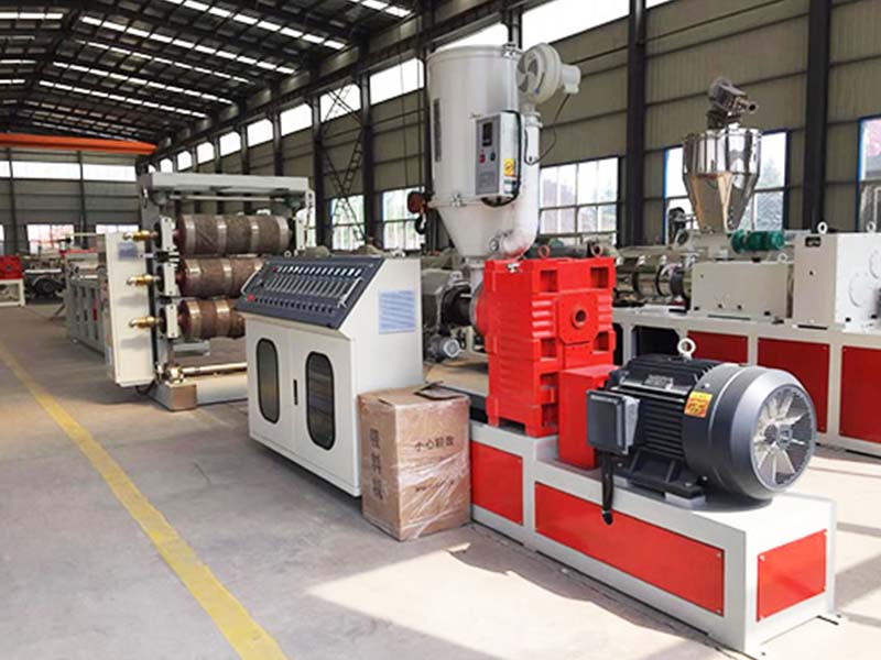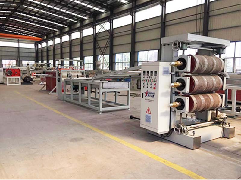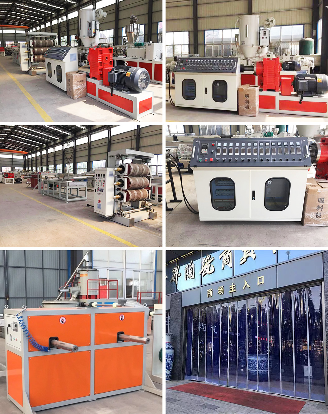PVC透明軟門簾生產(chǎn)線:可生產(chǎn)寬度200-600毫米、厚度0.8-3毫米的PVC透明塑料片材。該設備采SJ90或SJ-120單螺桿擠出機、T型彈性??诳烧{模具、立式或斜45度三輥壓光機、三合一水溫機、不銹鋼冷卻托架裝并裝有寬幅可調切邊刀、橡膠輥牽引機、雙工位氣漲軸收卷機。所生產(chǎn)的片材表面光澤,通透無暇,柔軟,無裂縫、無異味、無氣泡、柔軟耐寒、耐磨、耐酸堿、耐腐蝕。